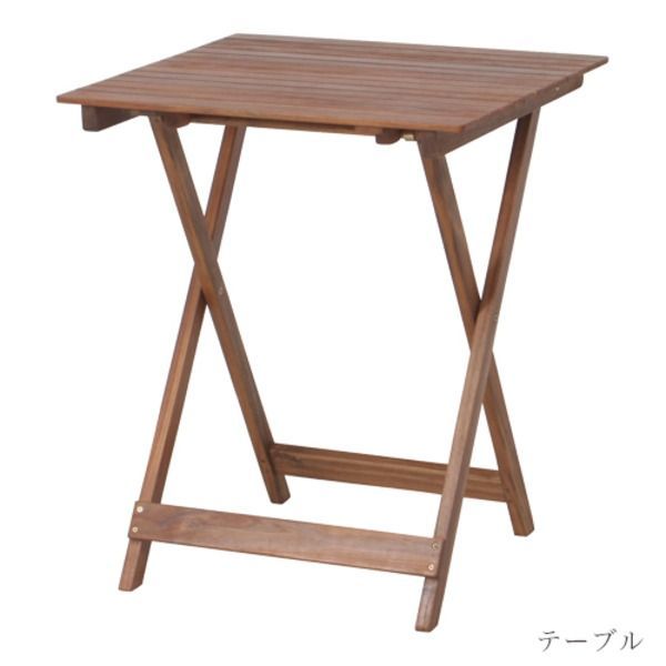 ガーデンテーブル & チェア 3点セット ×710 mm ブラウン 折りたたみ式 木製 ガーデニング ベランダ バルコニー