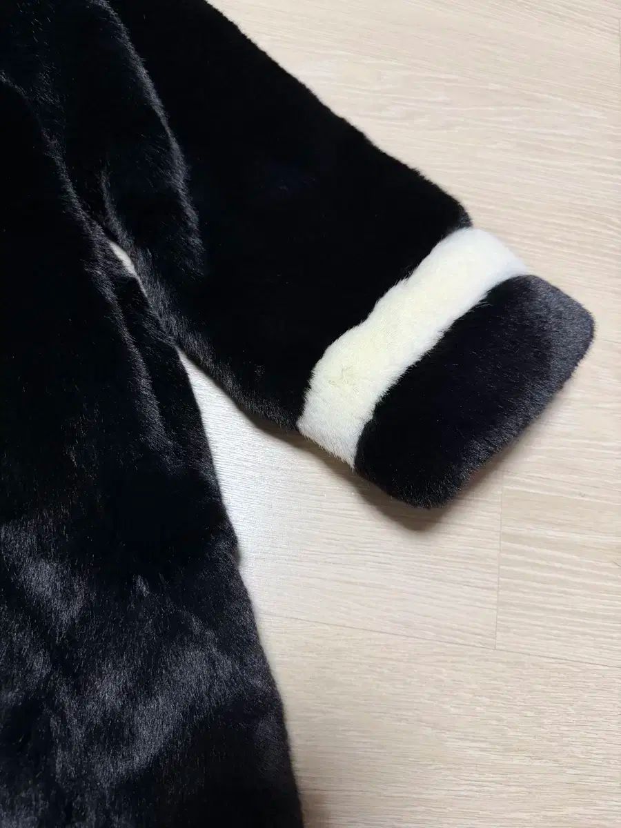 VOV ブラック フェイクファー ロング コートです。フードに白 ポイントが入っていてかわいいです。ロングコート 丈でヒップ 覆って暖かいです。コメント 無ければすぐ 安全決済してください!