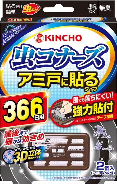アミ戸に貼るだけ簡単虫よけ。366日用2個入。