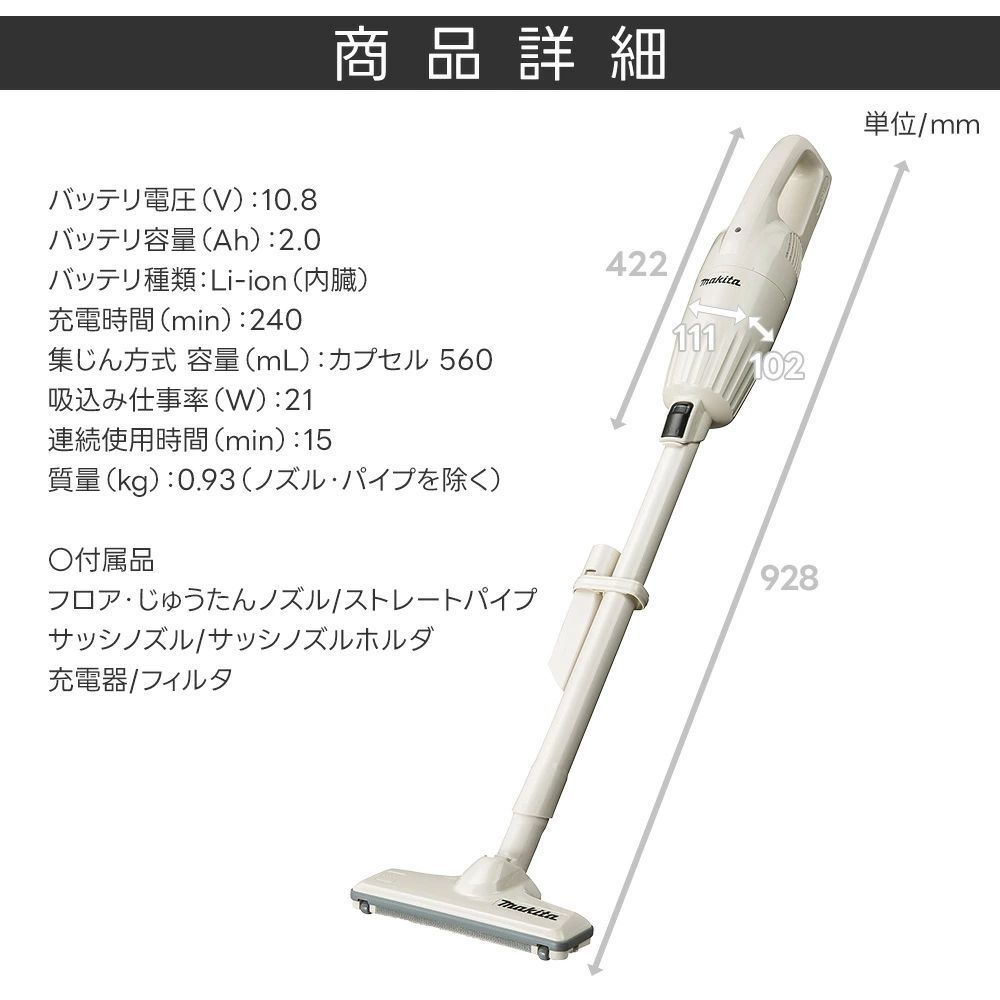 マキタ 掃除機 makita コードレス 充電器付き 一人暮らし コンパクト 省スペース ハンドクリーナー クリーナー 紙パック不要 オフィス 会社 日本製 フロア カーペット フローリング 清掃 省エネ エアコン掃除 1年保証 車 家具下 階段 2023新生活家電