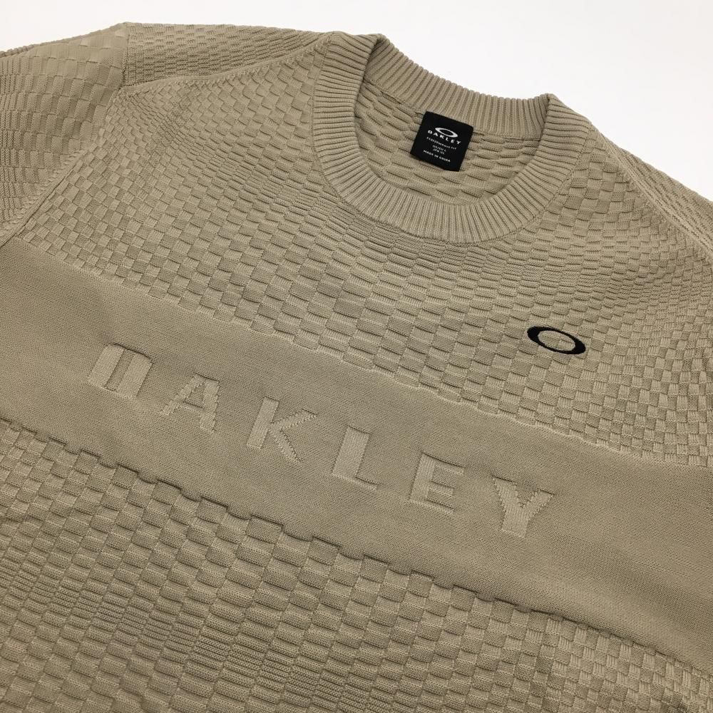 超 オークリー セーター ベージュ 変形格子柄 メンズ XL ゴルフウェア モデル Oakley