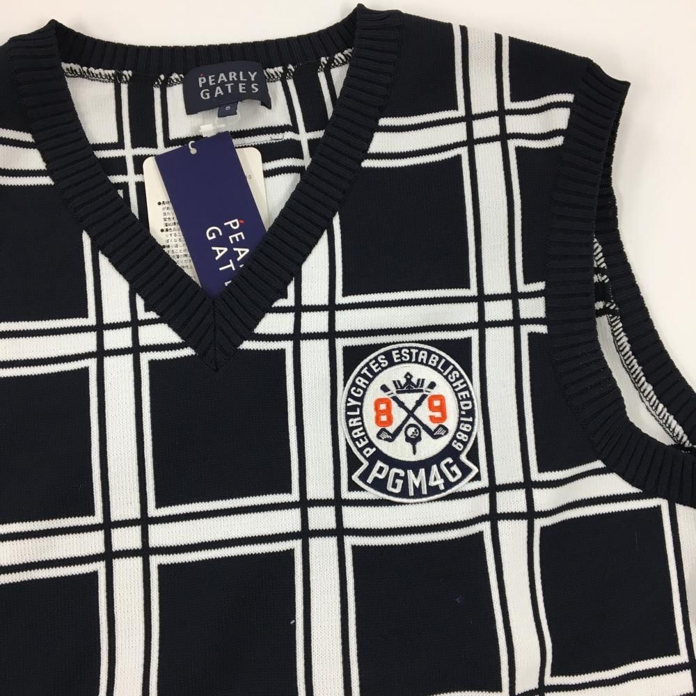 パーリーゲイツ ニットベスト ネイビー×白 Vネック 格子 メンズ 5 L ゴルフウェア PEARLY GATES