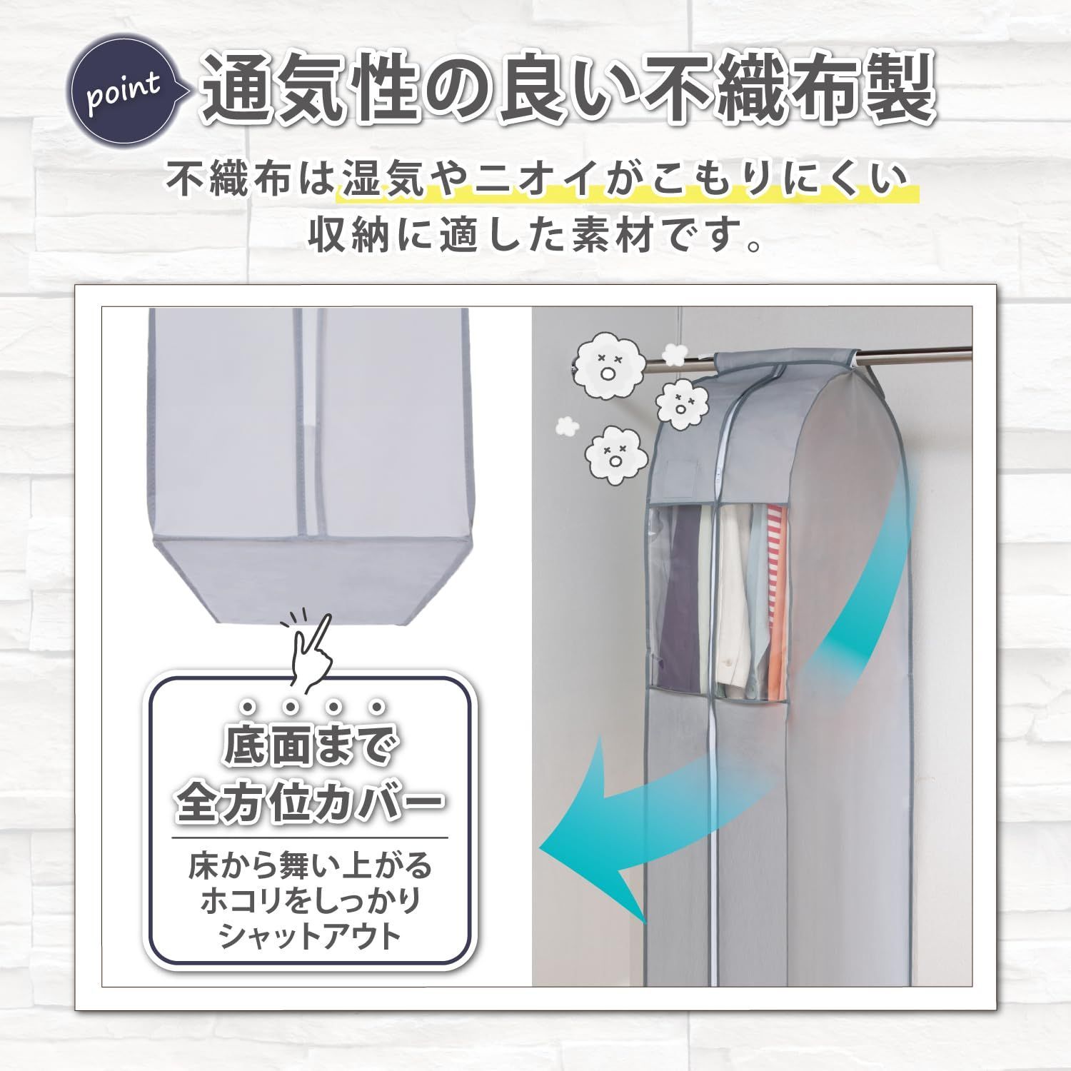ドレス 保管 洋服カバー ワンピース 不織布 ロングコート 衣装カバー ジャケット スーツカバー 組 クローゼット ロングサイズ 吊り下げ収納 ワイド 透明窓 マチ付き 防虫剤ポケット付き グレー 底閉じタイプ 衣類カバー まとめて収納 アスト