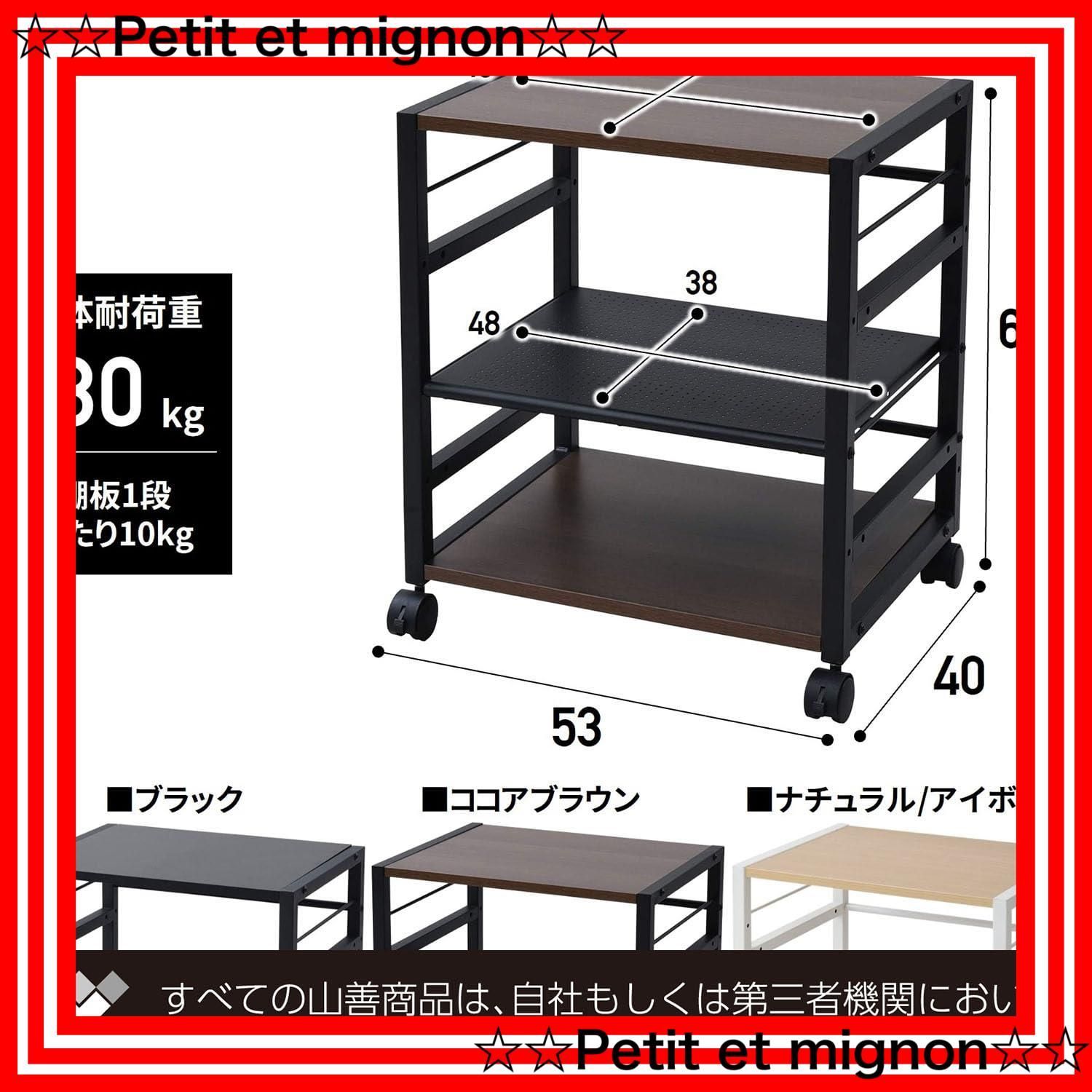 山善(YAMAZEN) デスク サイドワゴン 幅53×奥行40×高さ63cm A4対応 キャスター付き 天板・棚板高さ調節可能 組立品 ブラック/ブラック NNGS-3R(BK/SBK) 在宅勤務
