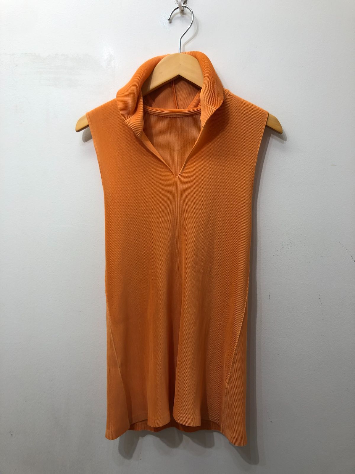 542☆PLEATS PLEASE プリーツプリーズ☆イッセイミヤケ☆フード付きノースリーブカットソー【3】オレンジ