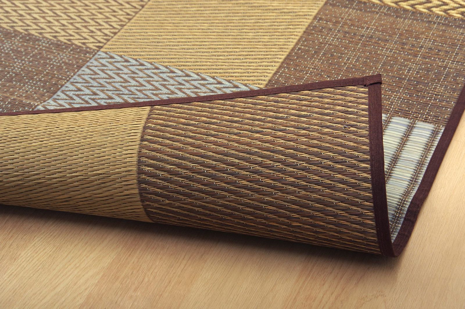 いろいろな織りを組み合わせたパッチワーク風のい草カーペットです