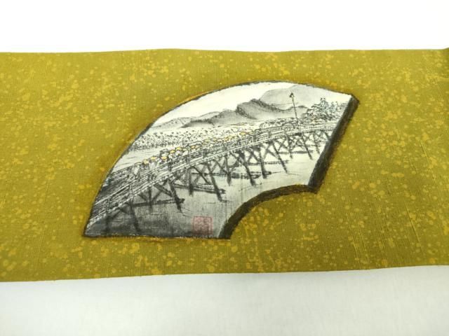 平和屋着物 つけ帯 紬地 手描き 地紙風景文 正絹 ps