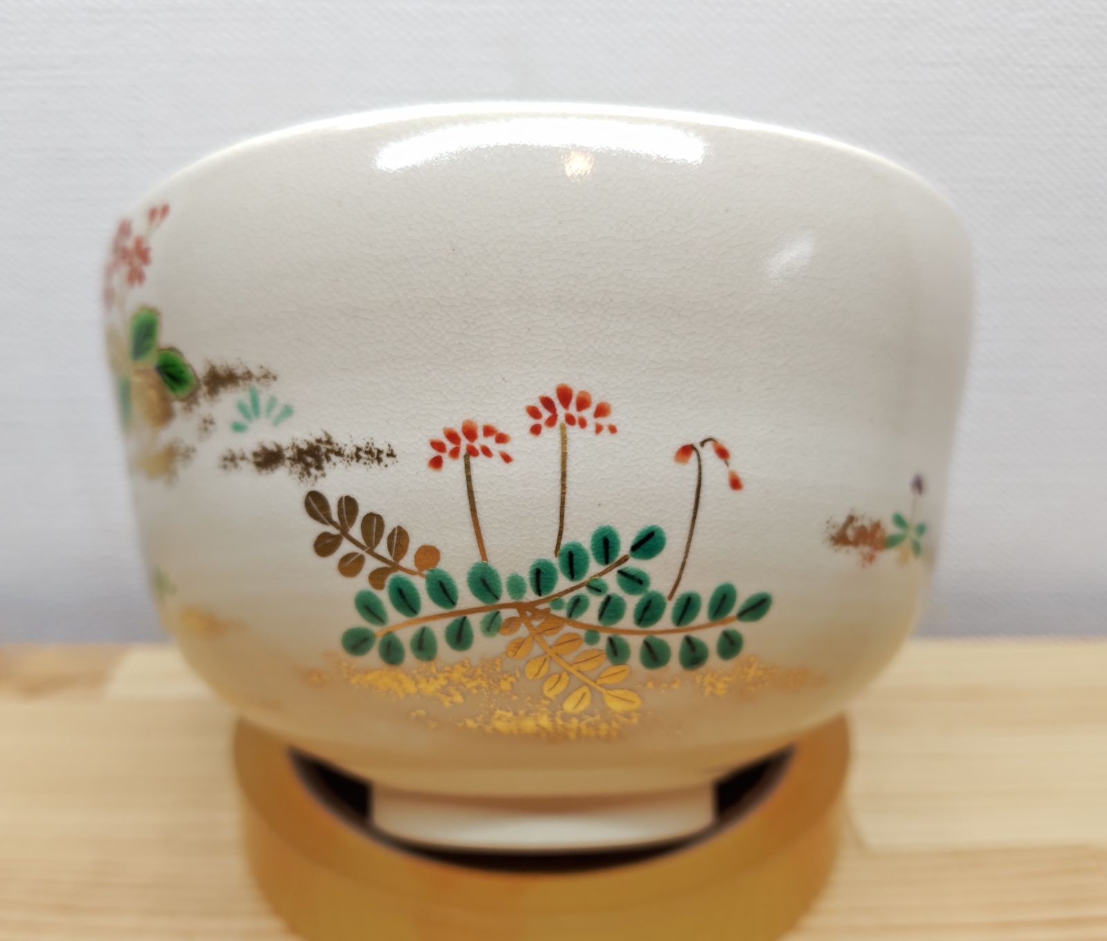 色絵のお茶碗で春草の図柄になっています。