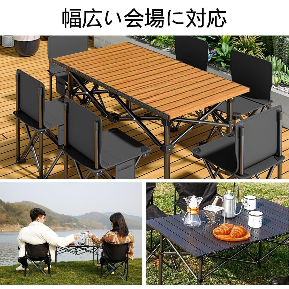 HEEOREV アウトドア テーブル チェアセット キャンプ テー ブル 7点セット(55*49*120CM、、木の色) 屋外用折りたたみ椅子 自動運転ツアー ピクニック テー ブルと椅子 組立簡単 軽量 防災 アウトドア キャンプ 釣り ピクニック バーベキュー キャ ンプ用品 花火大会 野外 テント ガーデン 【収納 袋付き テーブル1台につき収 納袋1枚 チェア1脚につき収 納袋1枚 】