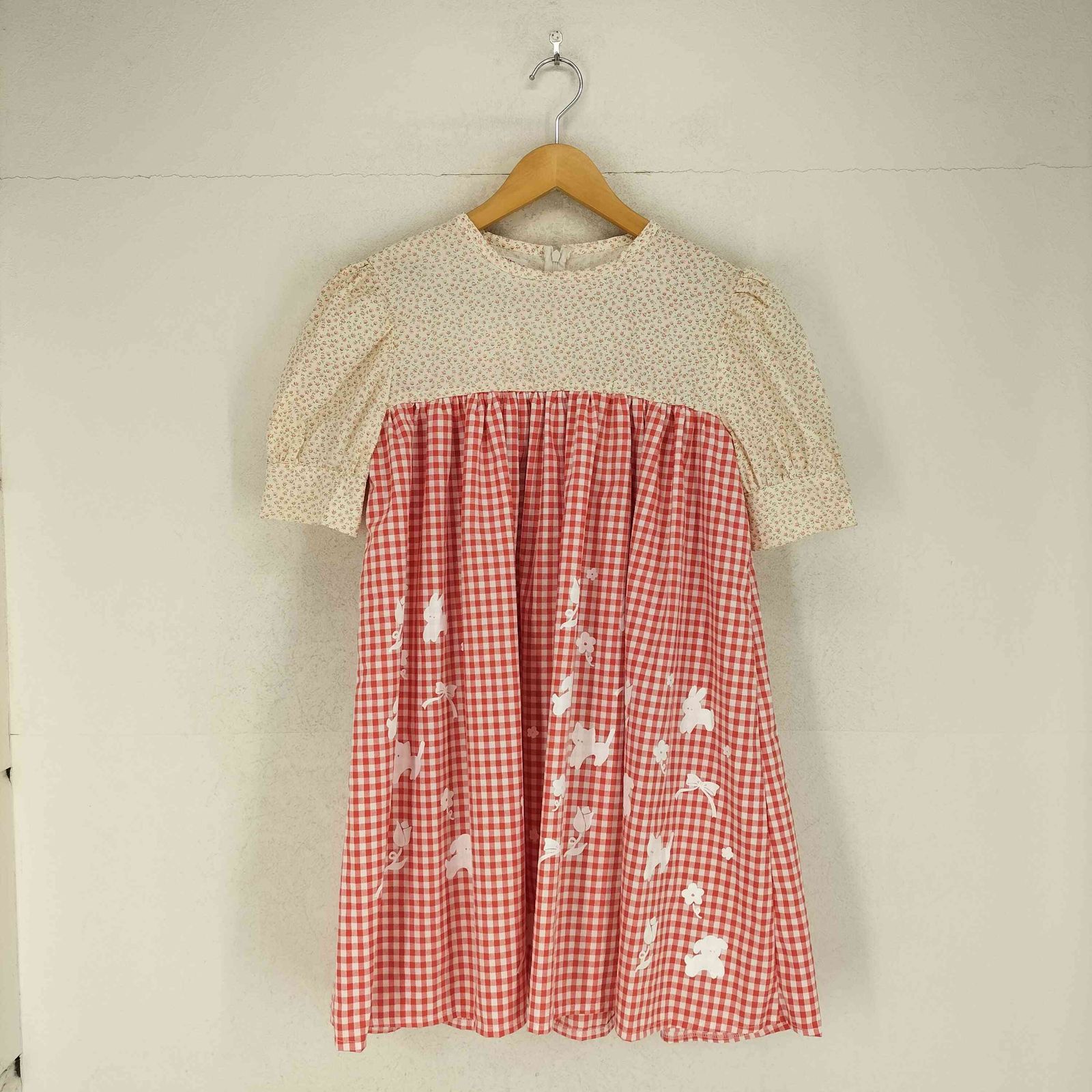 ユーズドフルギ 古着 hanagsugiyama チェック×花柄 ギャザーデザインチュニック domestic レディース 表記無