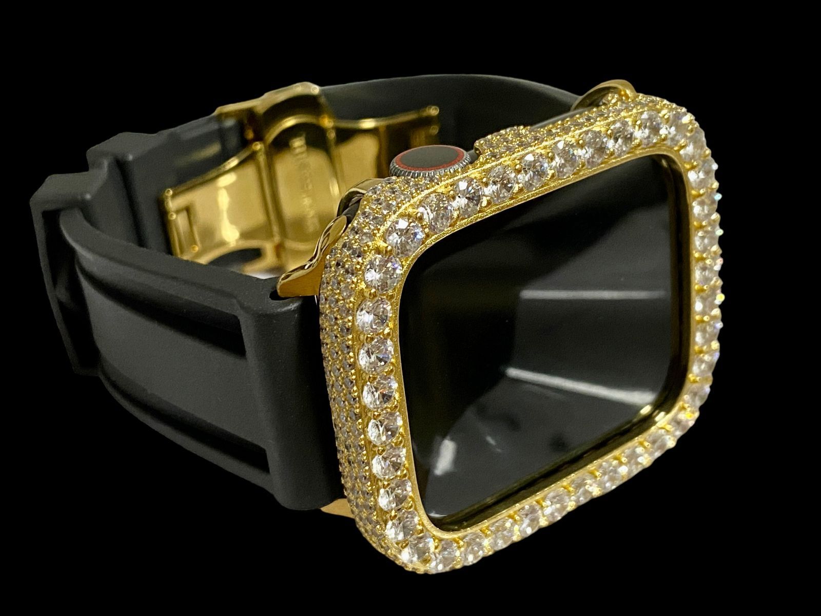 超 大粒ゴールド×ブラック AppleWatchキラキラケース カバー アップルウォッチ ラバーバンド ベルト 38 mm 40 41 42 44 45