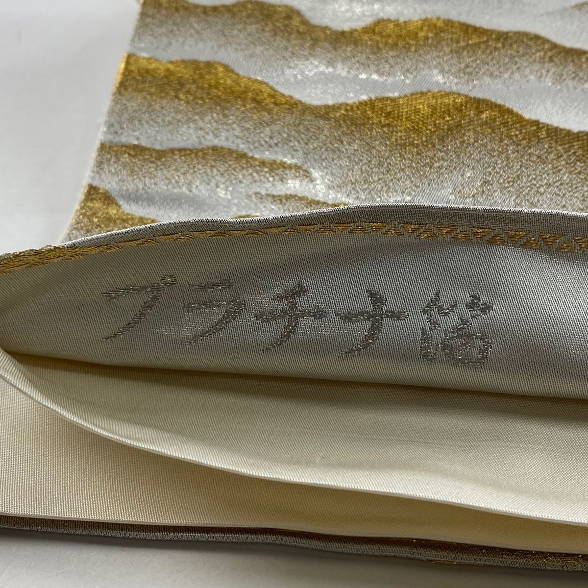 袋帯 横山大観 落款 朝陽霊峰 瑞雲 金糸 プラチナ箔 銀色 全通 正絹