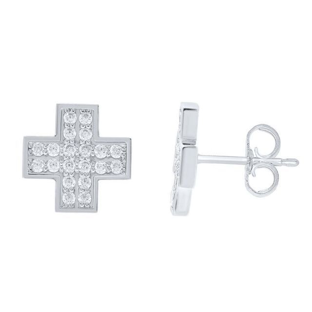 Men'sSterlingSilver1/2CaratT.W.DiamondCrossStudEarrings
