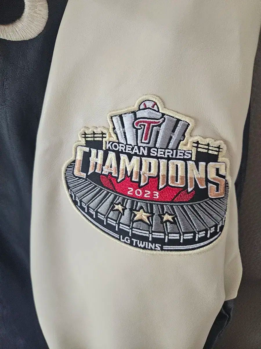 LGツインズ 2023 V3 チャンピオン ワッペンあり 1993スタジオ ネイビー スタジャン Lサイズです。