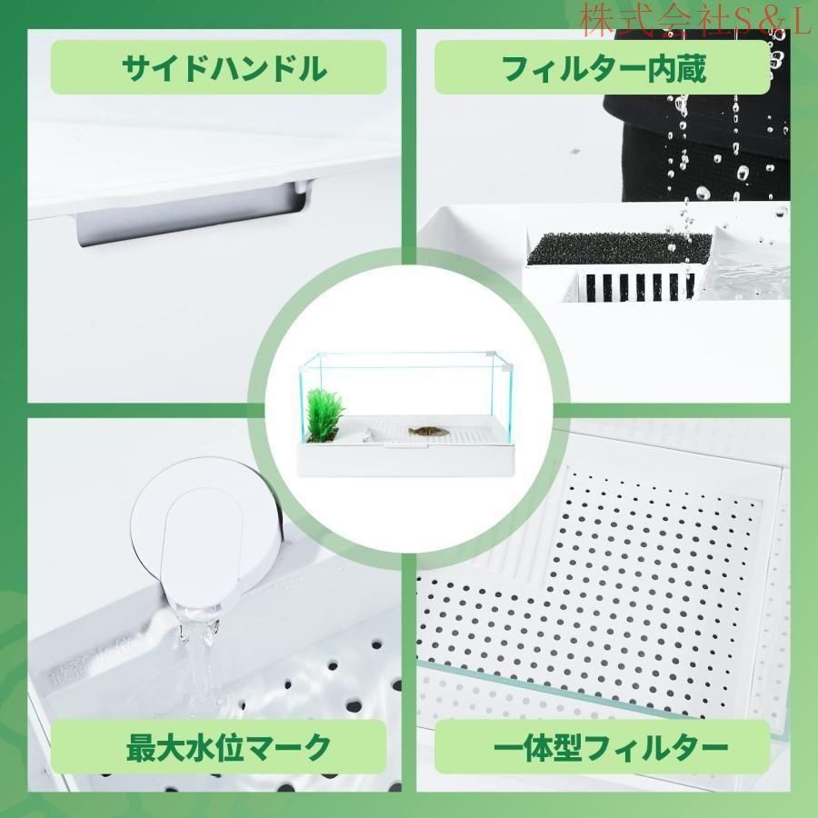 亀の水槽 両生飼育箱 オープンガラス水槽 タンカーポンプ フィルター S&L 360度見ている亀水族館生息地です