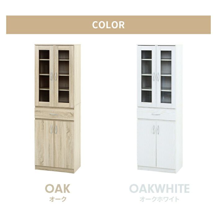 収納たっぷり!シンプルでおしゃれな食器棚。上下にしっかりと収納スペースを備え、食器やグラス、キッチン用品をまとめて整理整頓できます。奥行39.8cmのスリム設計ながらも高さ180cmで大容量。シンプルなデザインでキッチンに馴染みやすく、オーク・オークホワイトの2色展開でインテリアに合わせて選べます。毎日のキッチンをすっきり見せる実用性とデザイン性を兼ね備えたアイテムです。