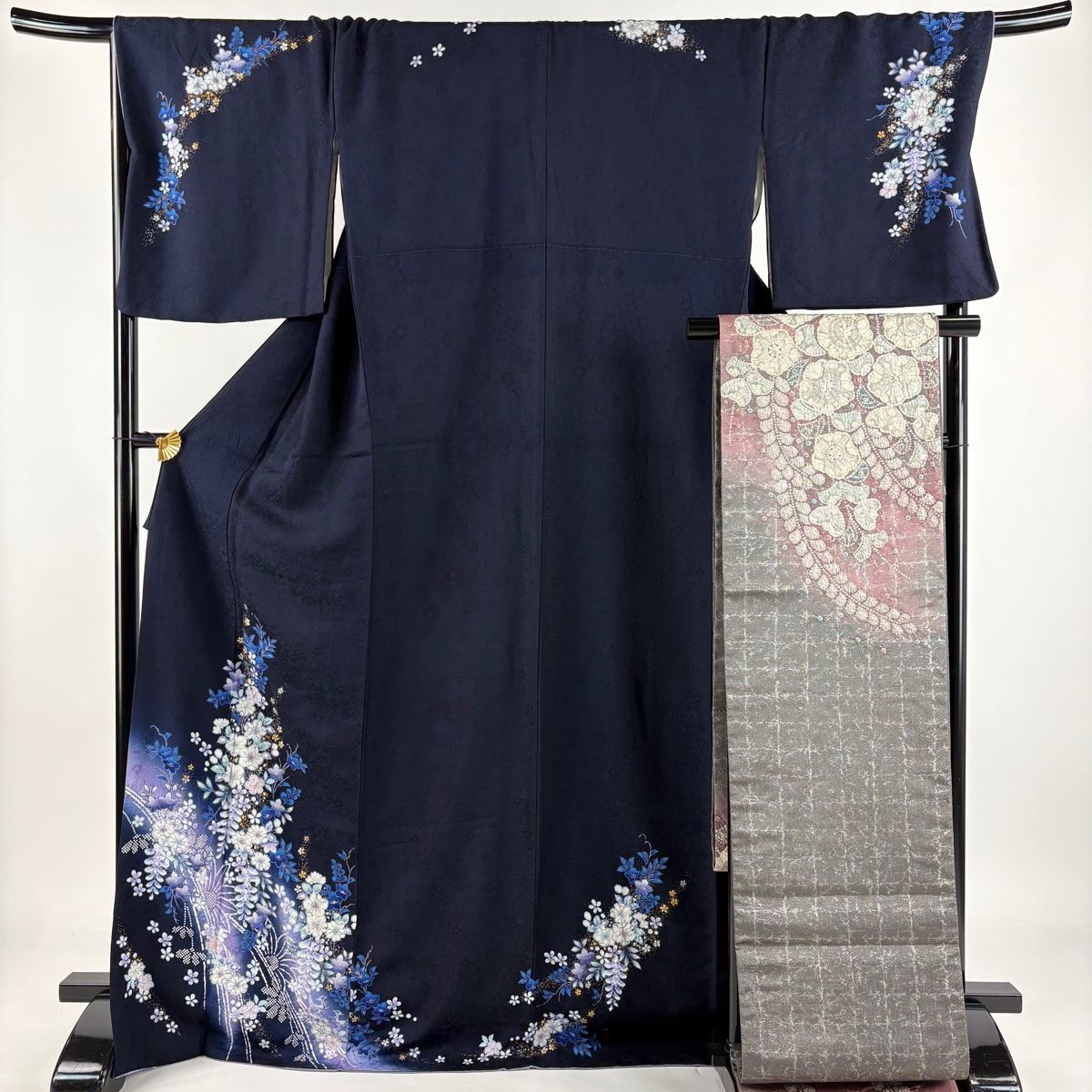 訪問着 身丈172 cm 裄丈67.5 L 袷 翠山工房 袋帯セット やまと 落款 辻が花 金銀彩 ぼかし 濃紺 正絹