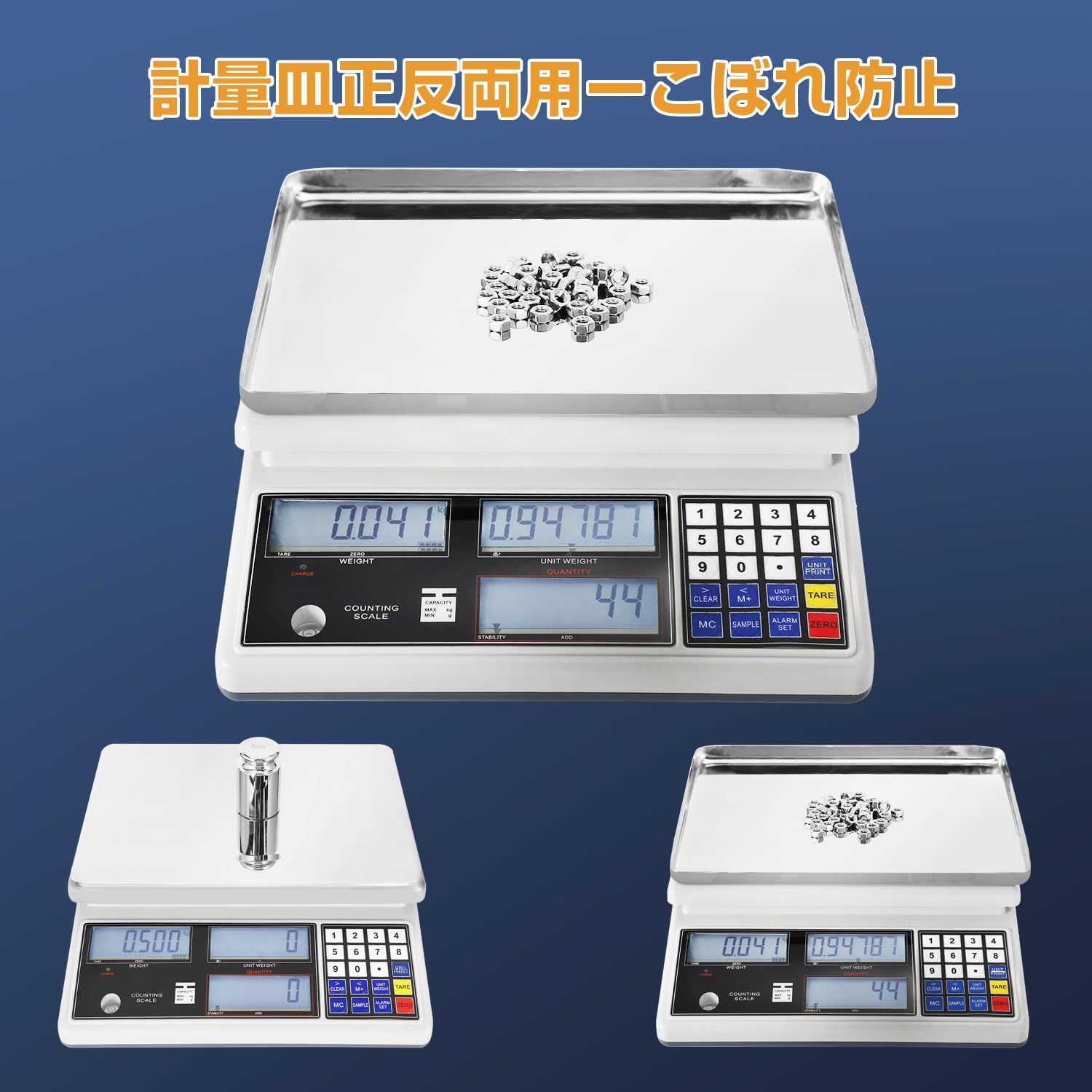 上限と下限アラーム:このデジタルカウントスケールには、風袋引き、計量、積算、上限/下限アラーム設定などの複数の機能があり、時間を大幅に節約して効率を向上させることができます。