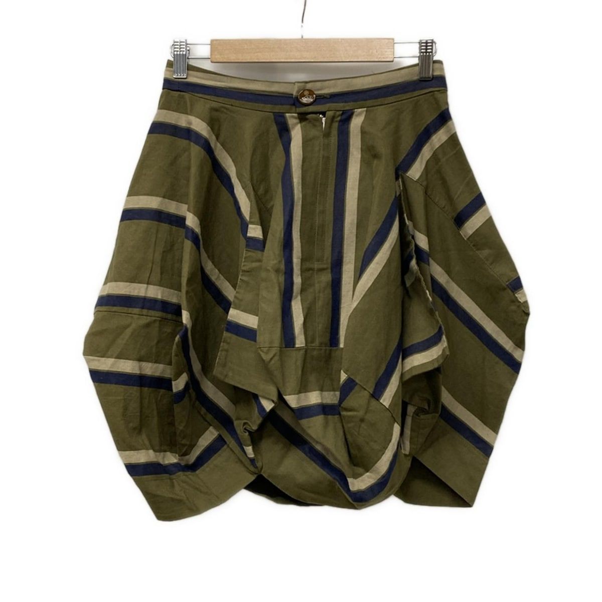 ヴィヴィアンウエストウッドレッドレーベル ミニスカート サイズ2 M レディース - カーキ×ベージュ×ネイビー ストライプ|変形デザイン