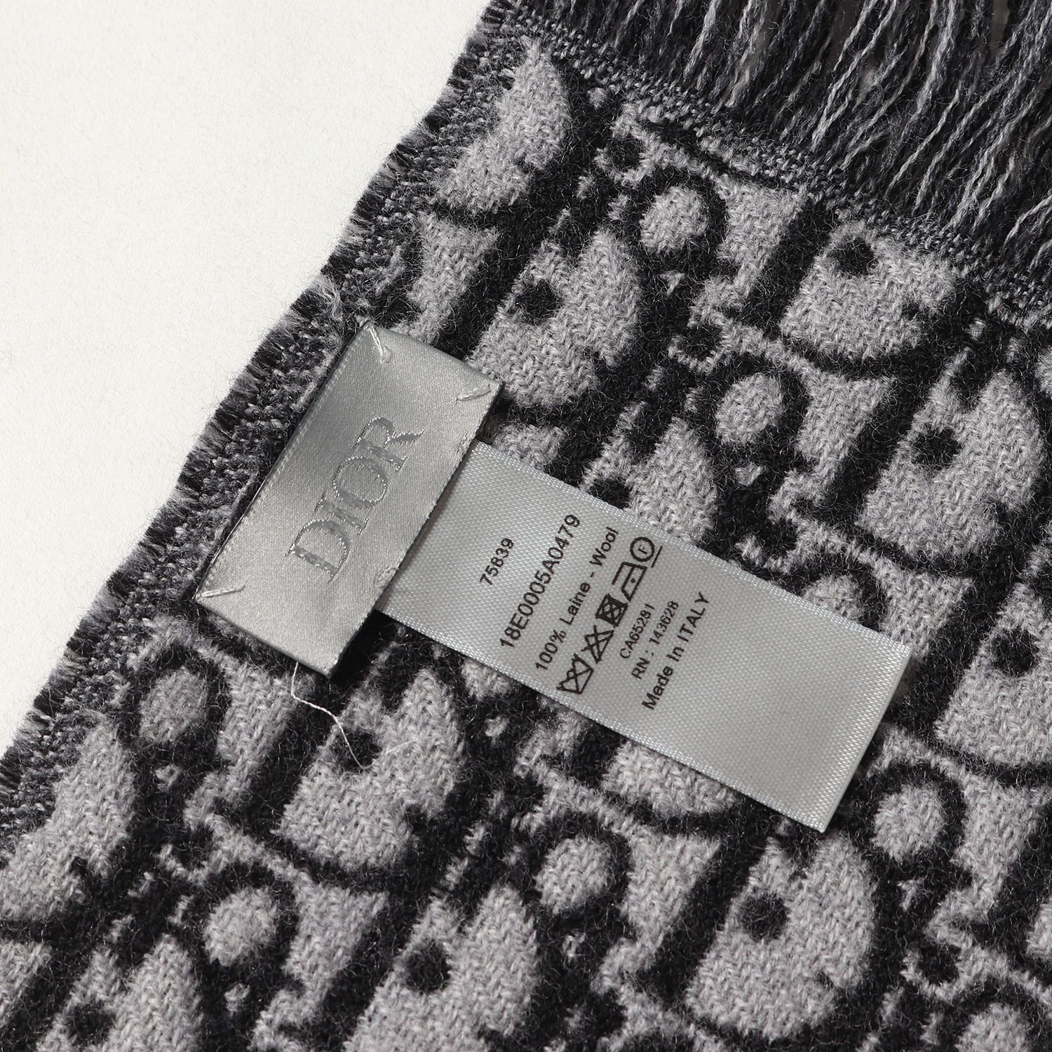 Dior ディオール マフラー オブリークジャガード フリンジ ウール グレー イタリア製 ブランド ファッション アイテム 小物 メンズ