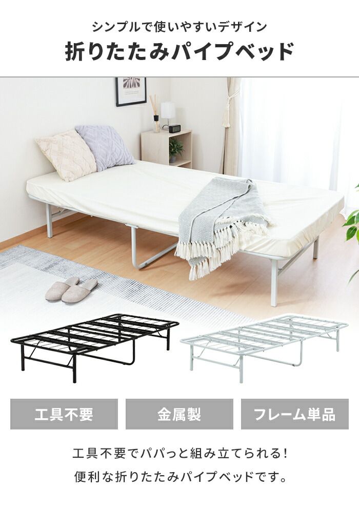 パイプベッド シングル 折りたたみ ベッド フレーム スチール製 頑丈設計 スチールベッド 工具不要 スタイリッシュ 省スペース