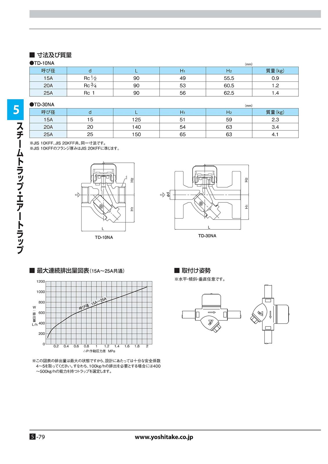 ヨシタケ スチームトラップディスク式ストレーナ内臓 蒸気ドレン 最小作動圧力一次側圧力の50 ねじ込み接続 接続口径20 A 本体FCD 450 最高温度220℃ 型式TD 10 NA 20