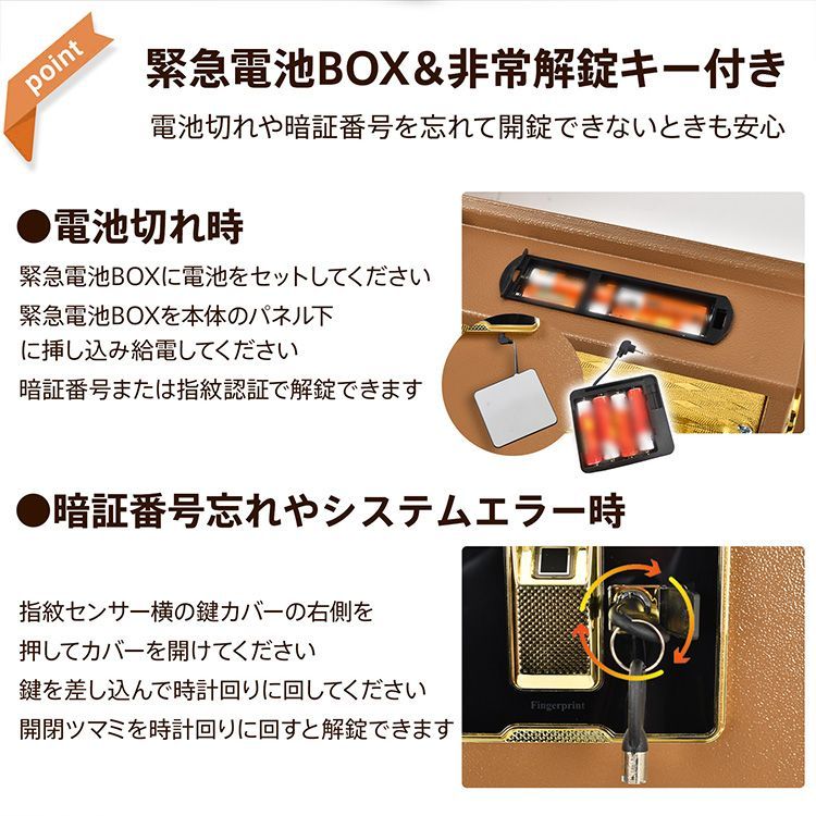 金庫 家庭用 業務用 45 L 防犯金庫 鍵付き テンキー 大容量 指紋認証 暗証番号 電子金庫 おしゃれ ダブルロック 保管庫 防犯 緊急キー 振動警報 sg 142-45