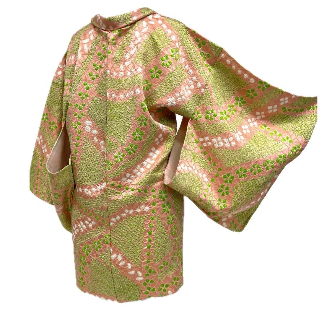 着物と帯 時流 ハ25957 t◆正絹 総絞り羽織◆♥品 緑 ピンク