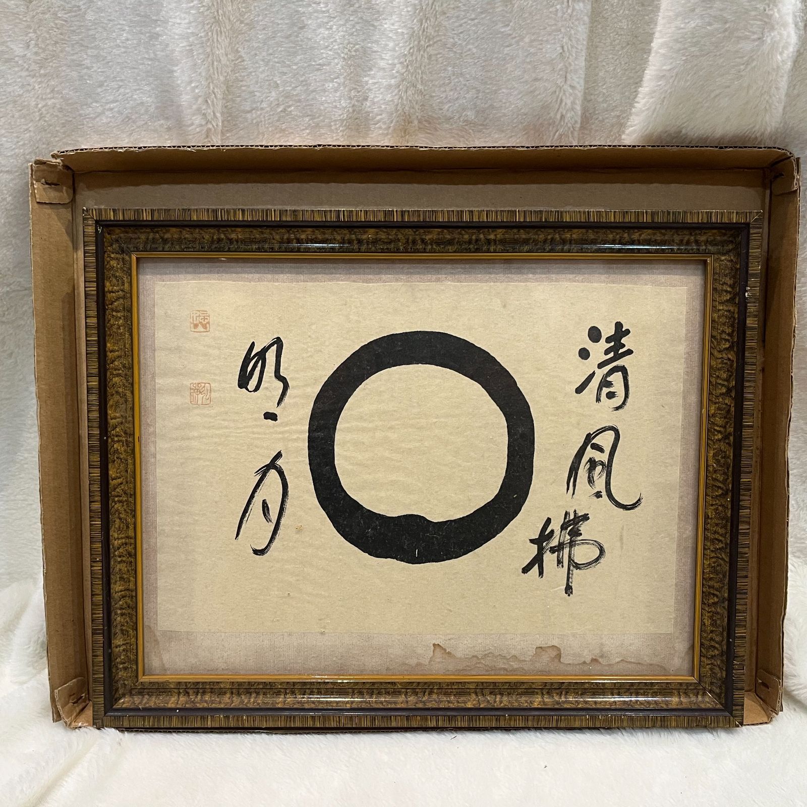 古墨禅画 清風拂明月円相 禅风雅墨 禅意图