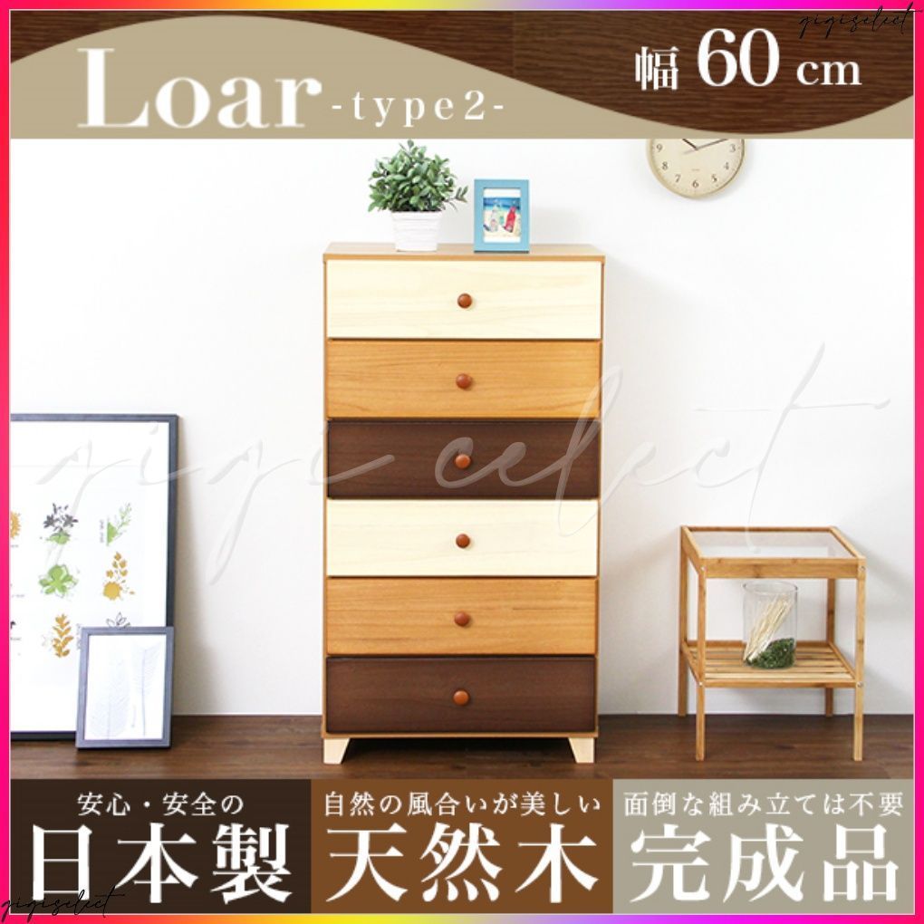 美しい木目の天然木ハイチェスト 6段 幅60cm Loarシリーズ 日本製・完成品|Loar-ロア- type2