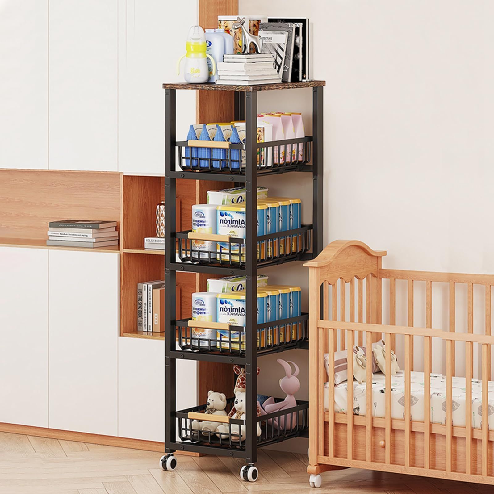 【商品仕様】素材:天板:パーティクルボード 、フレーム:スチール サイズ:5段 幅30×奥行40×高さ107cm