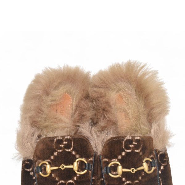 【グッチ GUCCI GG ホースビット ファー プリンスタウン フラットシューズ】