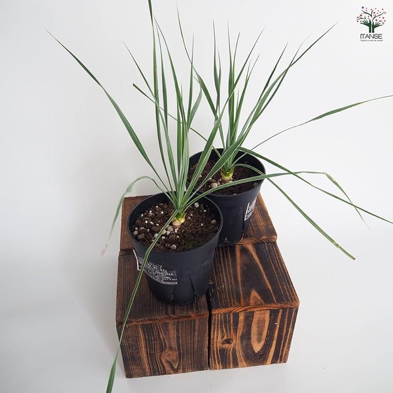 【品種特徴】 サファイアスカイズは、ロストラータの青みが濃い個体を選抜した品種で、放射状に広がるシルバーブルーの葉が美しいユッカです。 成長はとても緩やかですが、成長すると、幹立ちするため、おしゃれな草姿になります。