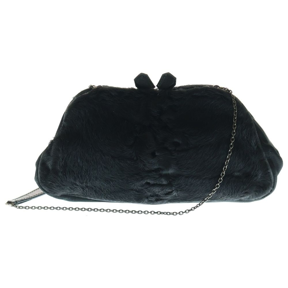 PRADA プラダ がま口 チェーンポーチ ハンドバッグ ミニバッグ ブラック ハラコ