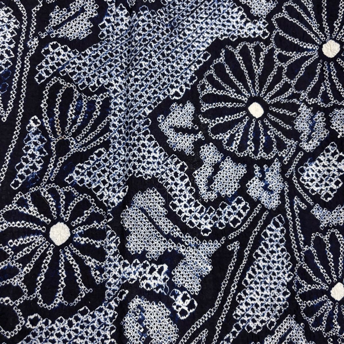 浴衣 身丈155 cm 裄丈63 S 絞り浴衣 菊 紺色 綿
