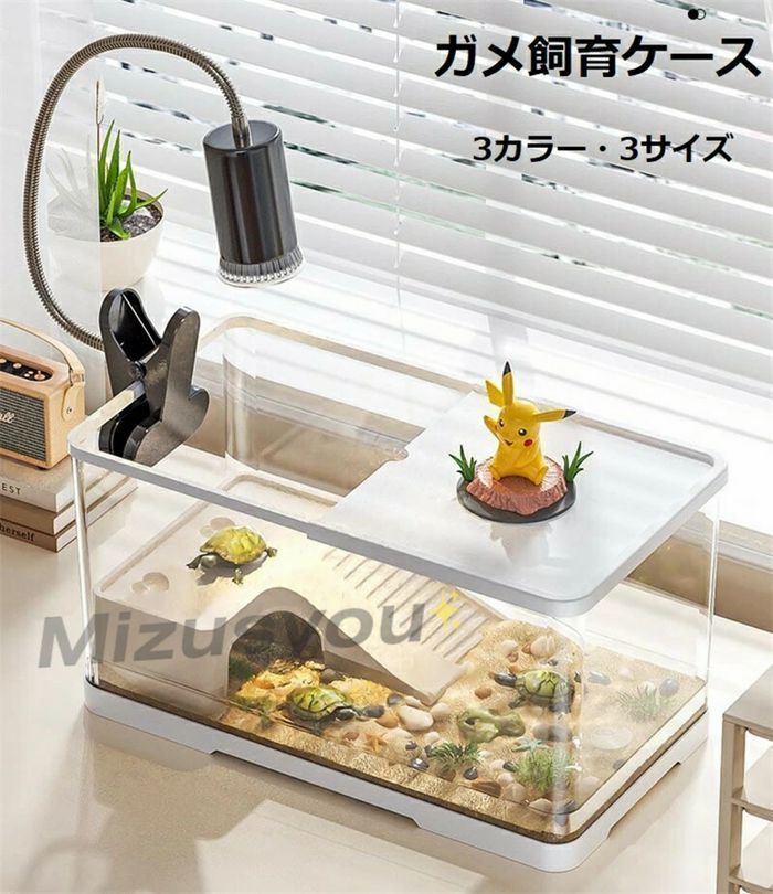 1. [亀 水槽] 大きなサイズで、快適な生活空間を提供:S、M、Lの3サイズ展開で、あなたの亀のサイズに合わせた水槽を選べます。30cm以上のゆったりとした空間で、亀が自由に泳ぎ、休むことができます。
