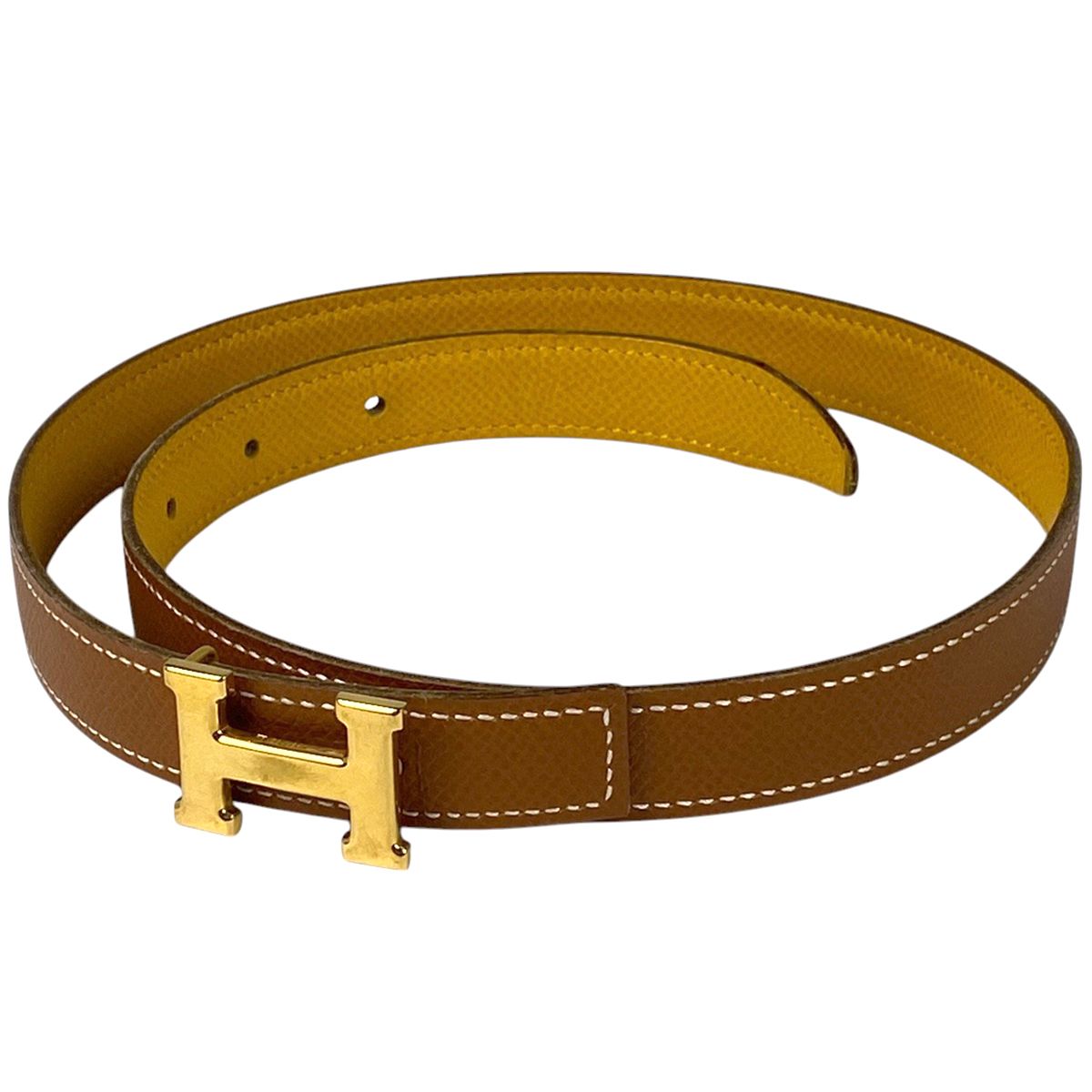 エルメス HERMES ミニ コンスタンス リバーシブル Hベルト B刻印 ベルト クシュベル ブラウン イエロー レディース