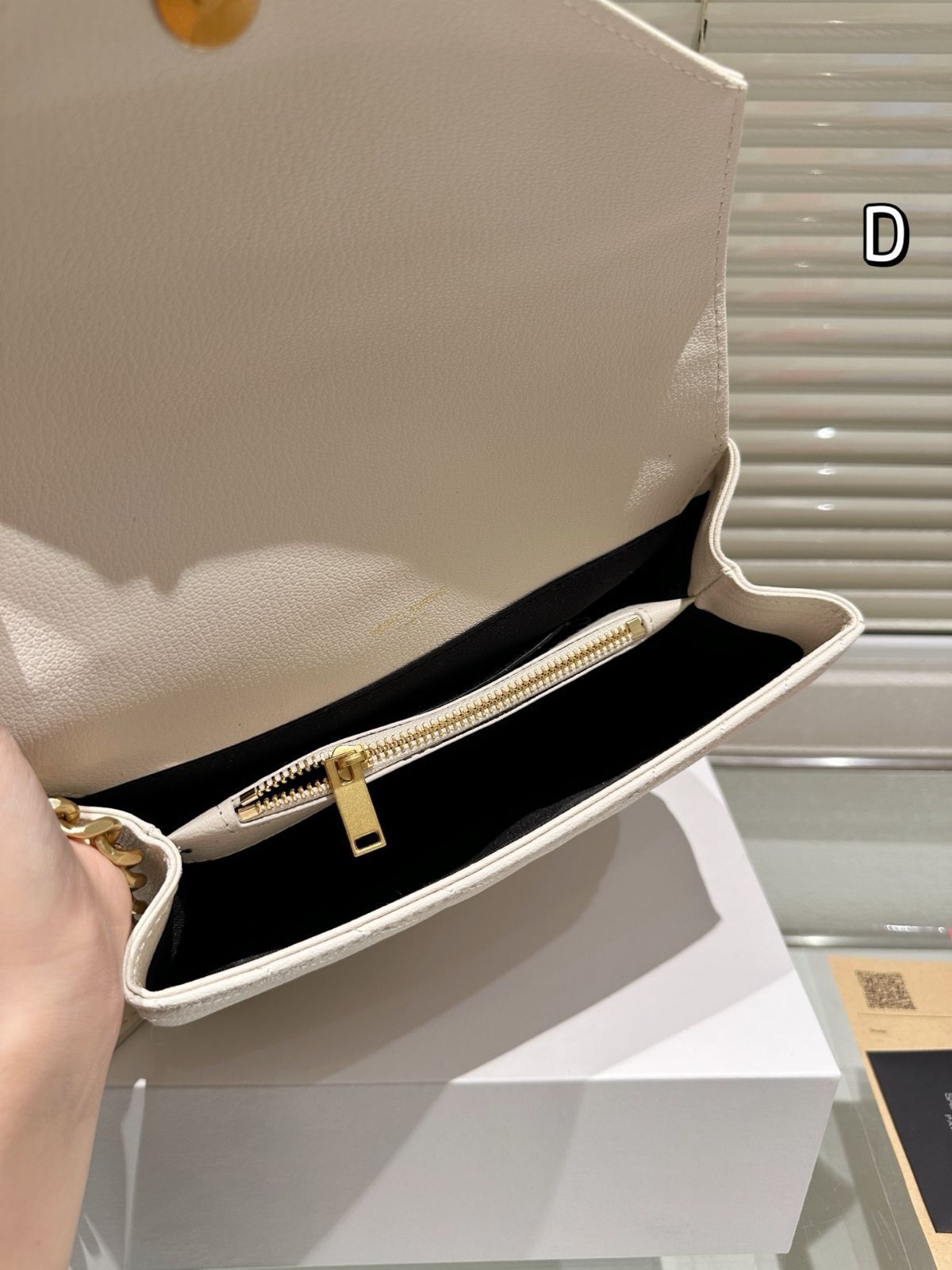 バッグはフラップ式の開閉で、磁性ボタンが付いています。内部は 2 つの隔てられたスペースと、1 つのジッパーポケットがあり、背面には大きな平ポケットも設けられており、物を整理しやすく、収納性に優れています。肩ベルトは金属チェーンと皮革が組み合わさっており、滑動式のチェーン肩ベルトなので、長さを自由に調節でき、シングルチェーンやダブルチェーンに切り替えることができ、片肩、斜め掛け、アームバッグなど、様々な背負い方が可能です。