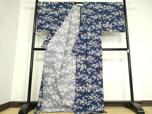 平和屋着物 小紋 単衣 草花文 洗える着物 az
