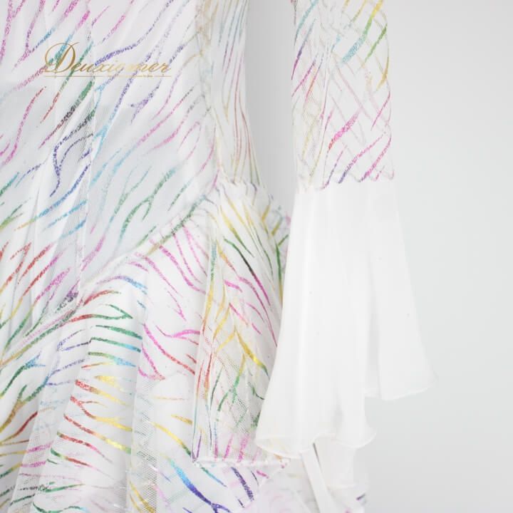 #社交ダンス #ダンスドレス #ダンス衣装 #パフォーマンス衣装 #ホワイトドレス #カラフル模様 #サイズフリー #女性用ドレス #ファスナー #伸縮性 #ナイロン製 #華やか #社交ダンス衣装 #ドレスコーデ #おしゃれ #ダンススタイル #トルソー #イベント衣装 #舞台衣装 #ENUTSU