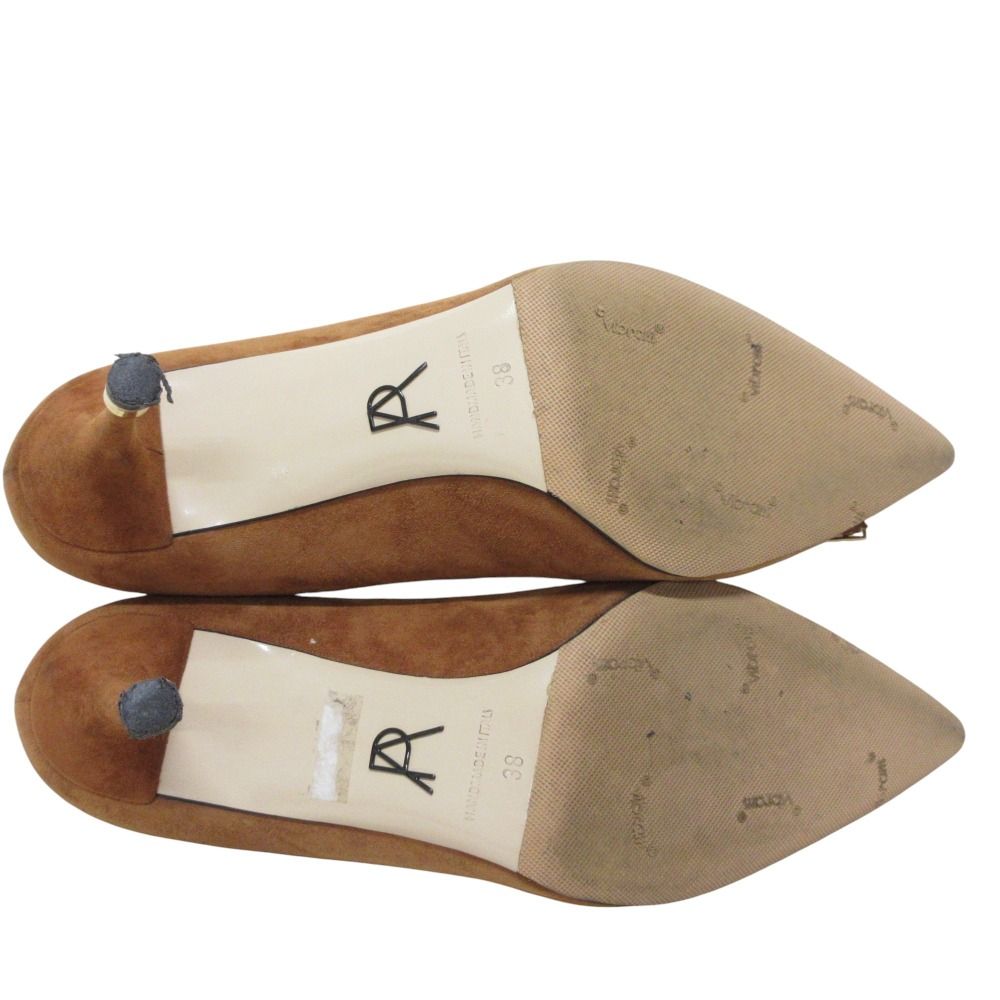 PAUL ANDREW ポールアンドリュー ビジュープレート スエード ポインテッドトゥ パンプス サイズ38 24.0 cm相当 キャメル レディース 古着