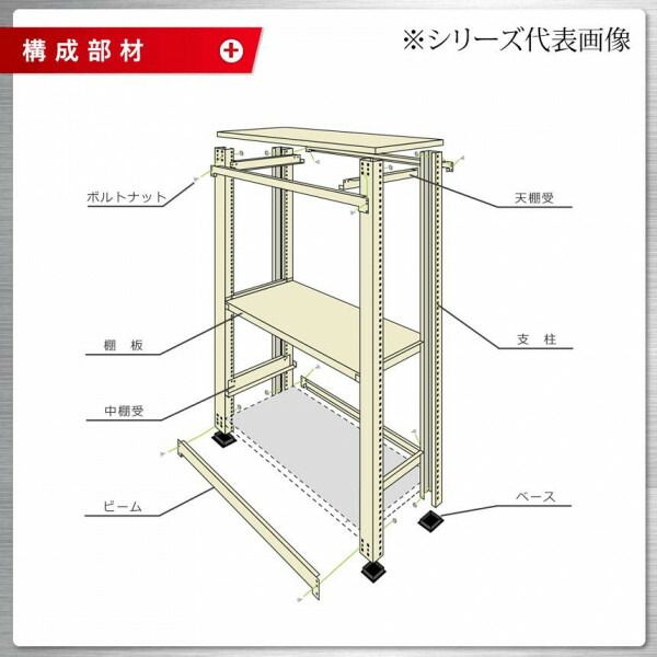 軽中量ラック 耐荷重200 kgタイプ 間口1500×奥行600×高さ1800 mm 4段 アイボリー