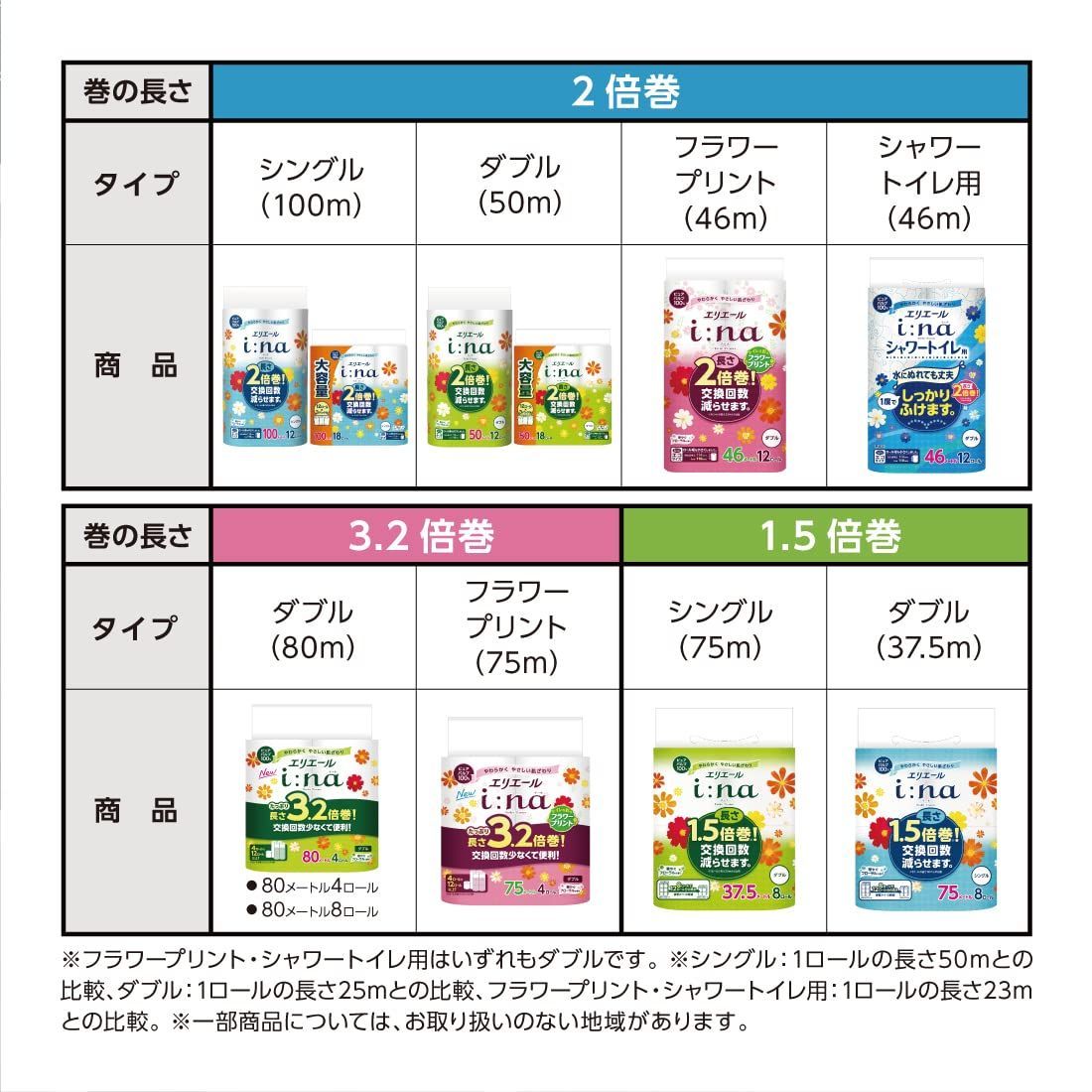 エリエール トイレットペーパー i:na(イーナ) 2倍巻き 100m×72ロール(18ロール x 4パック) シングル パルプ100% 華やぐフローラルの香り【ケース販売】