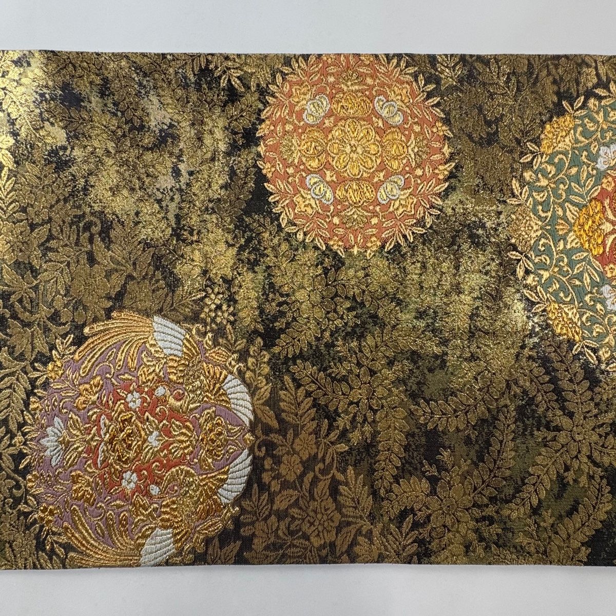 袋帯 秀品 向かい鳥 華文 金糸 箔 金色 六通 正絹