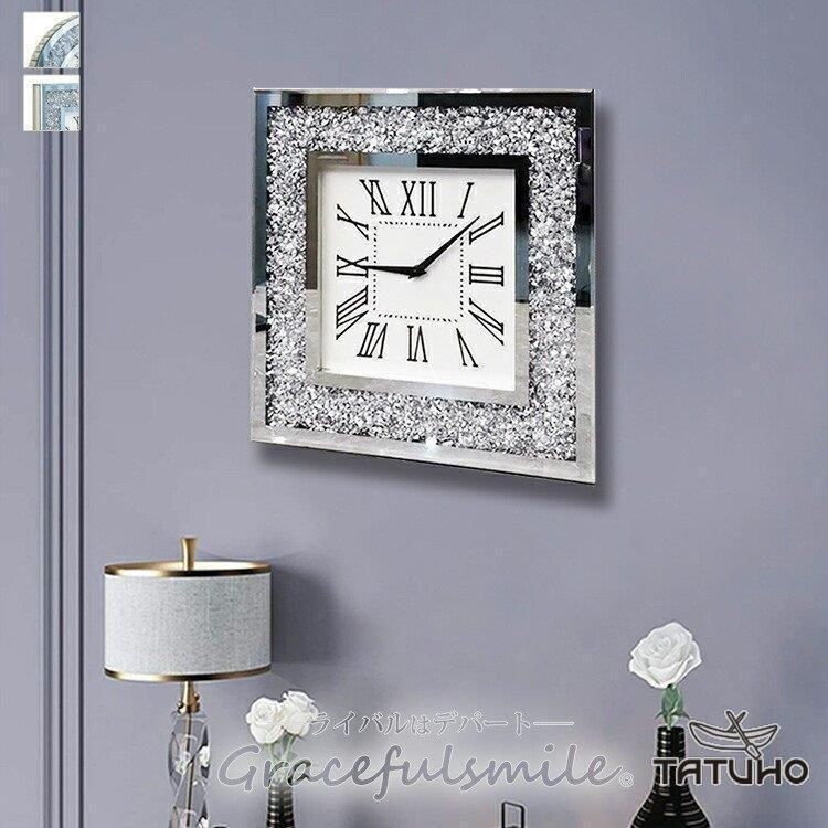 掛け時計 おしゃれ 壁掛け時計 北欧 モダン 音しない スクェア 丸い 手作り キラキラダイヤ aoc 20