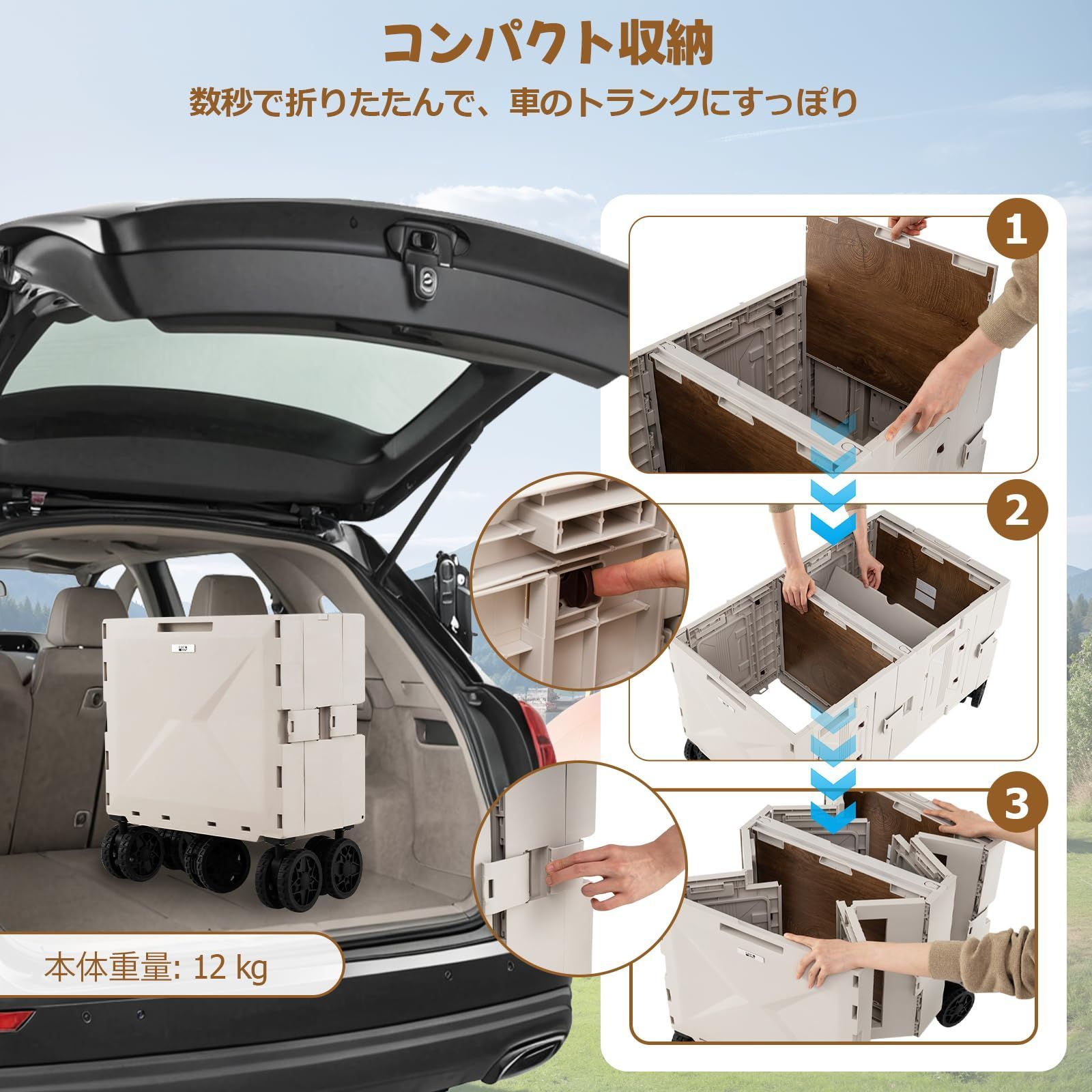 ※車に常備しておくと安心:アウトドアや急な荷物運びにもすぐに対応可能。