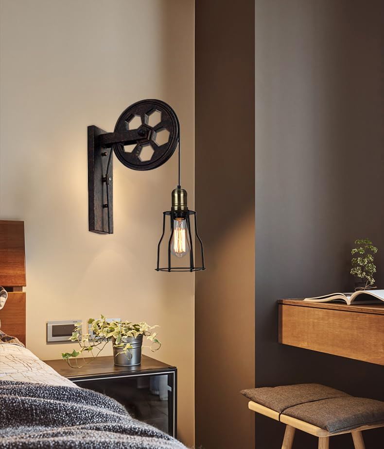 ランプ 壁 プーリー トイレ リビング レストラン通路パブカフェ レトロ アンティーク ビンテージ 部屋 ライト アメリカン雑貨 間接照明 おしゃれ ブラジャー スチームパンク ガレージ 滑車 系 燭台 ブラケットライト LEE KY