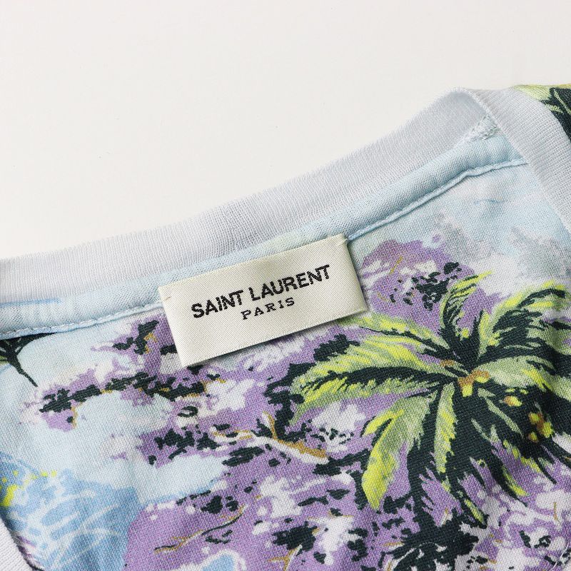 【品名】美品 イタリア製 2016SS サンローラン パリ SAINT LAURENT PARIS 415871 アロハプリント ノースリーブトップス S/水色