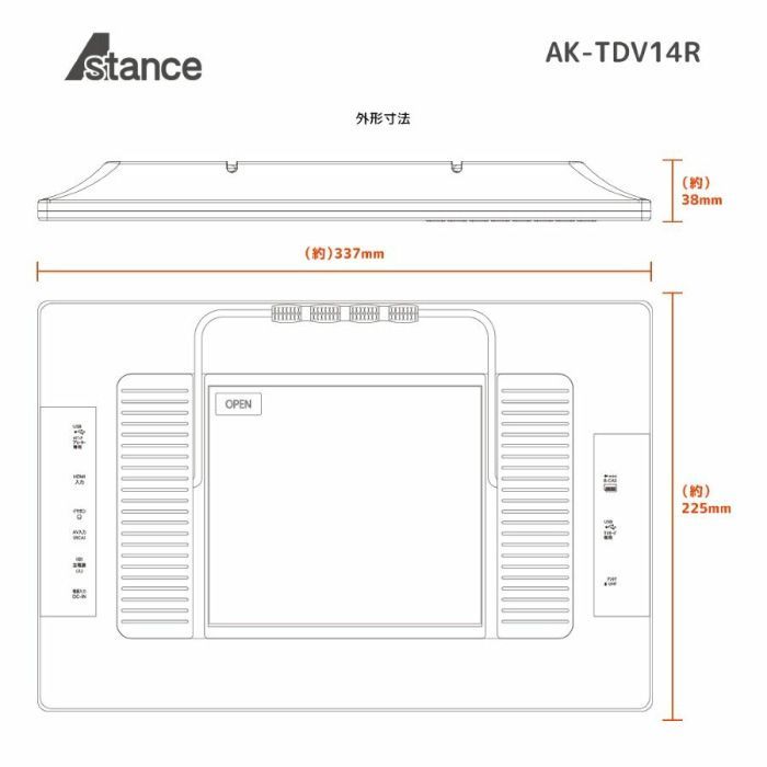 [Astance]14インチ 地デジチューナー搭載 ポータブルDVDプレーヤー【AK-TDV14R】