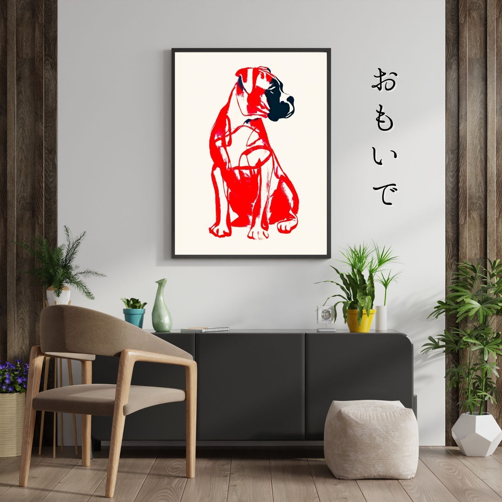 名入れOK Red Line - ボクサー犬 No.1 アートポスター ペットロス 北欧モダン ミニマルインテリア カフェスタイル